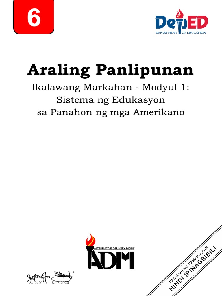 Apan 6 Q2 Mod1 Sistema Ng Edukasyon Sa Panahon Ng Mga Amerikano V2 With Signature Pdf